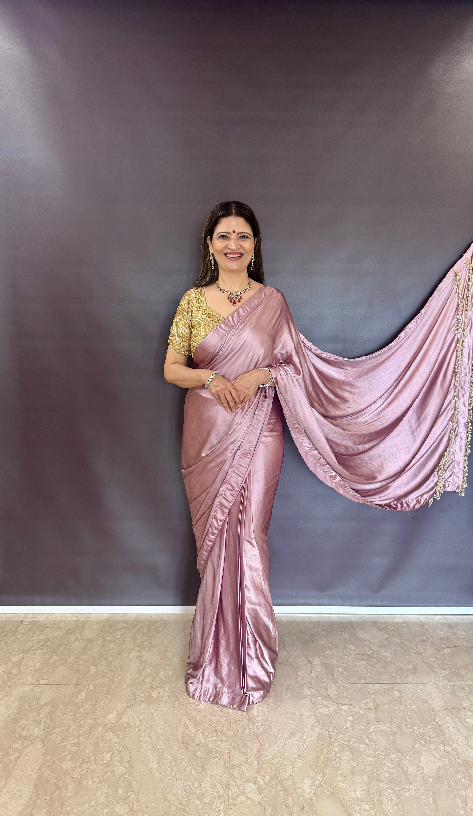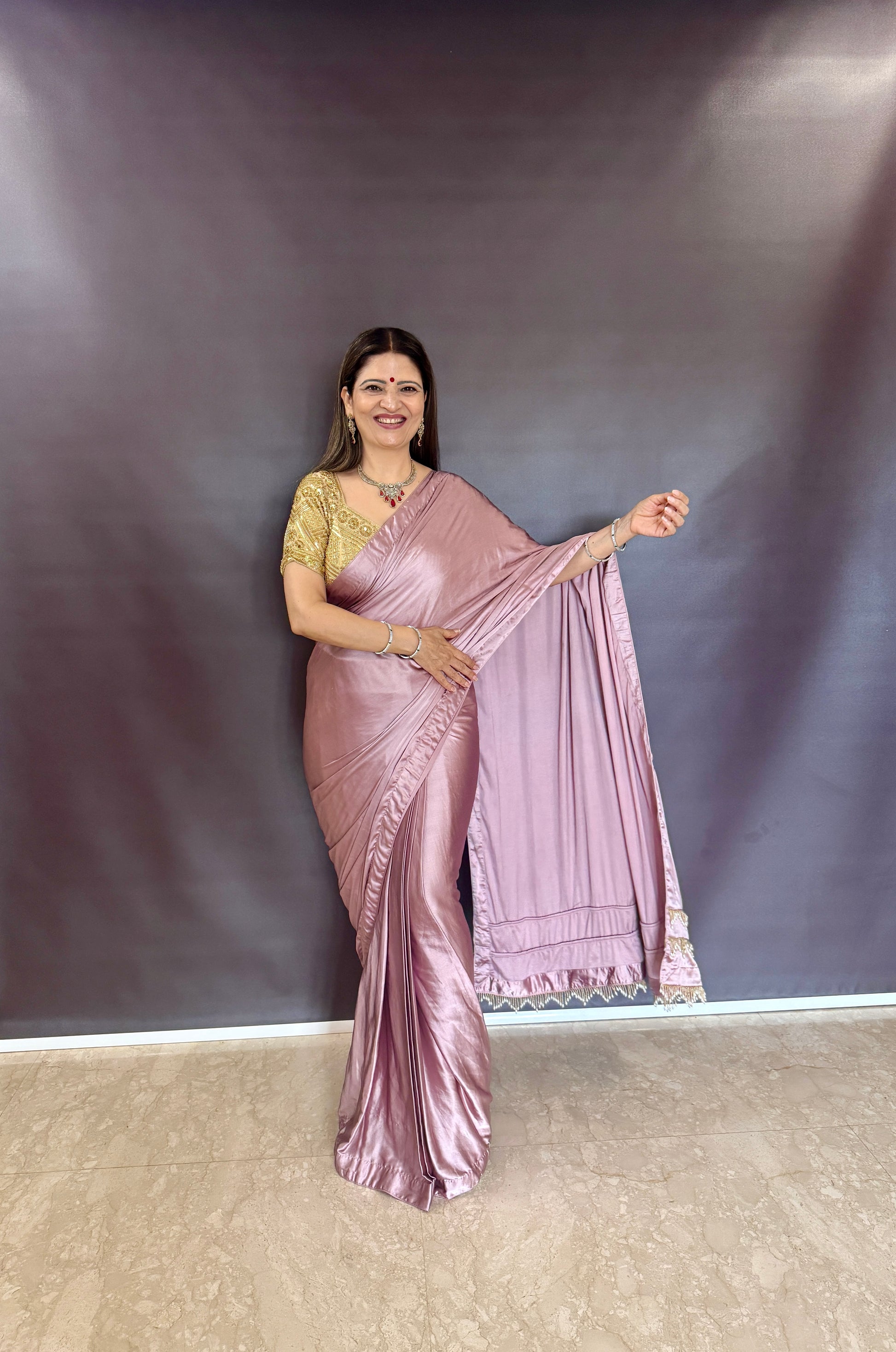 Introducing the Satin saree, a stunning pocket saree that comes with a pre-stitched blouse, eliminating the hassle of finding the perfect match. Made from high-quality Satin fabric, this saree exudes elegance and charm. The pre-stitched feature makes it easy to wear and ensures a flawless drape every time, with no need for a petticoat. This gorgeous piece is perfect for special occasions, weddings, or formal events, and will surely make you stand out in the crowd. Embrace the timeless beauty and grace of the heavy hand embroidered latkan lace saree.